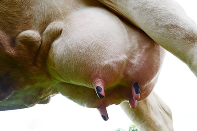 Trả lời: Trước hết bạn kiểm tra xem vú có bị cứng hoặc vắt thử sữa nếu thấy sữa đặc, vón thì đó là biểu hiện của bệnh viêm vú. Bạn cần vắt hết sữa và tiêm vào bầu vú 1 tuýp thuốc Mamifore hoặc masrizetFort. Sau 24 giờ thì tiếp tục vắt và bơm thuốc. Làm liên tiếp 3 ngày sau đó kiểm tra xem vú đã mềm chưa. Nếu vú đã mềm thì vắt kiệt sữa sau đó bơm 1 tuýp thuốc Mamifort secado cho tới khi bò đẻ.